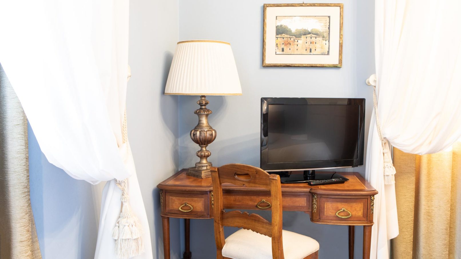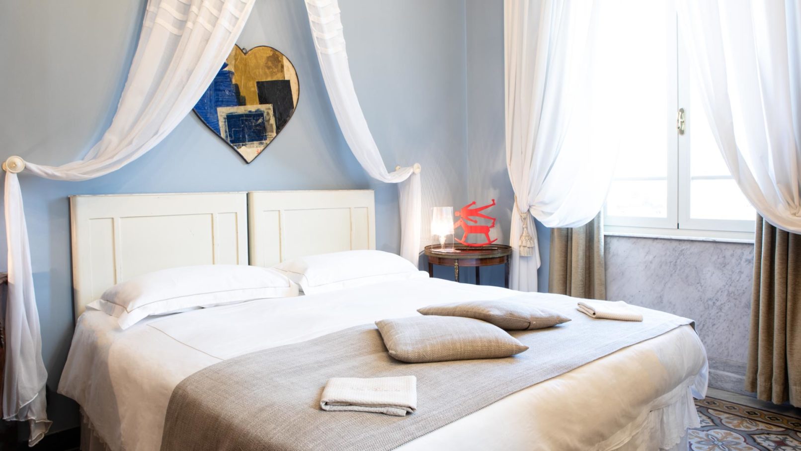 La Suite ha tutti gli infissi con vetro insonorizzato per garantire un perfetto riposo, aria condizionata, frigobar ed è presente il necessario per preparare un ottimo tè o caffè.